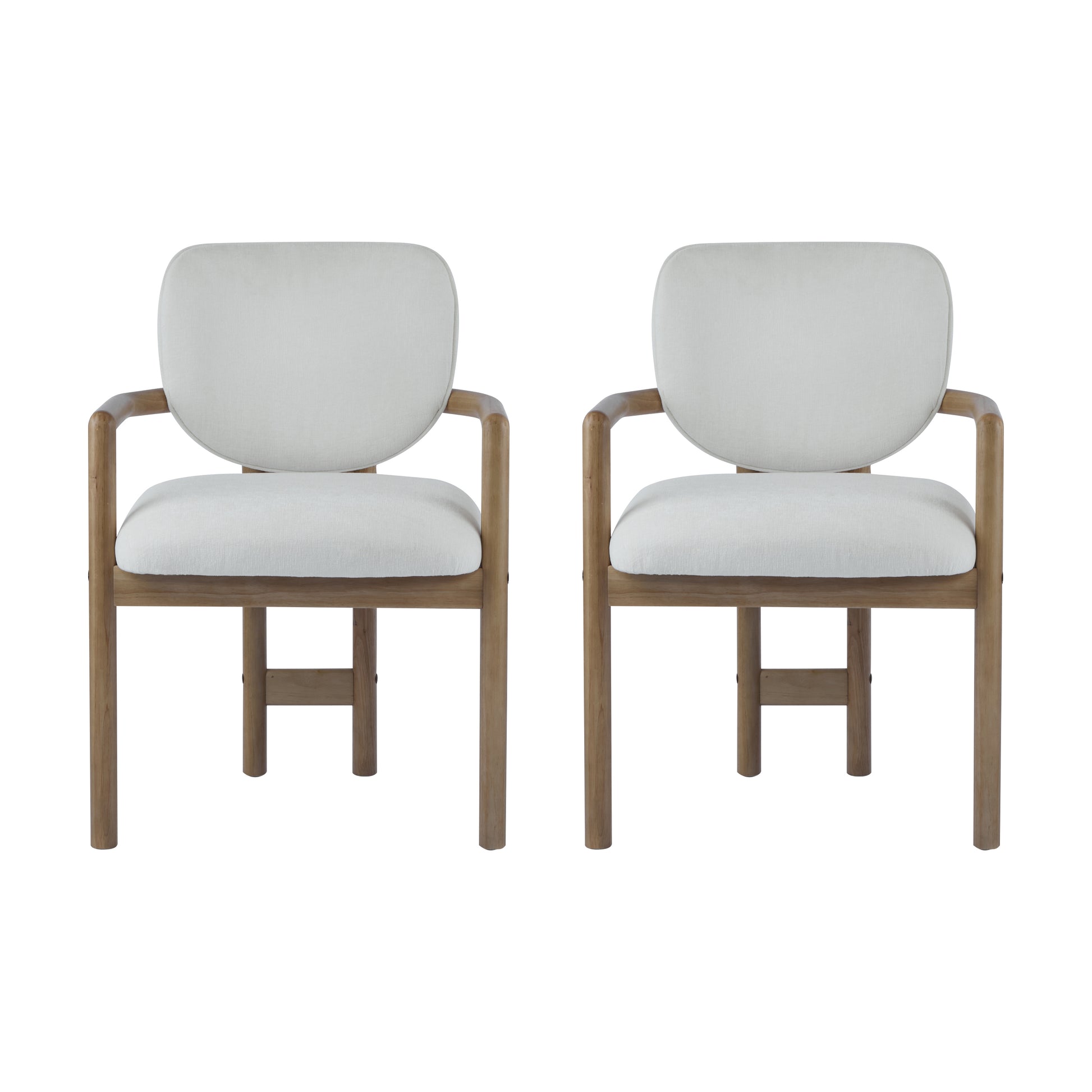 Modern Wood Accent Upholstered Dining Arm Chairs (Set Of 2)